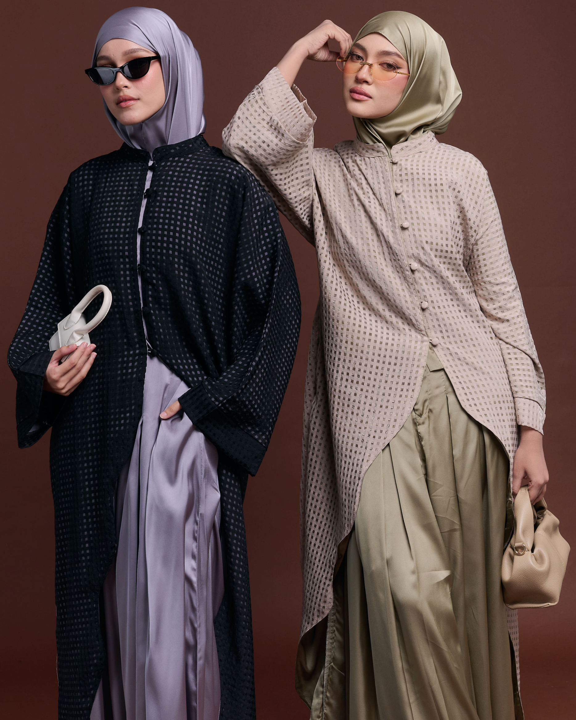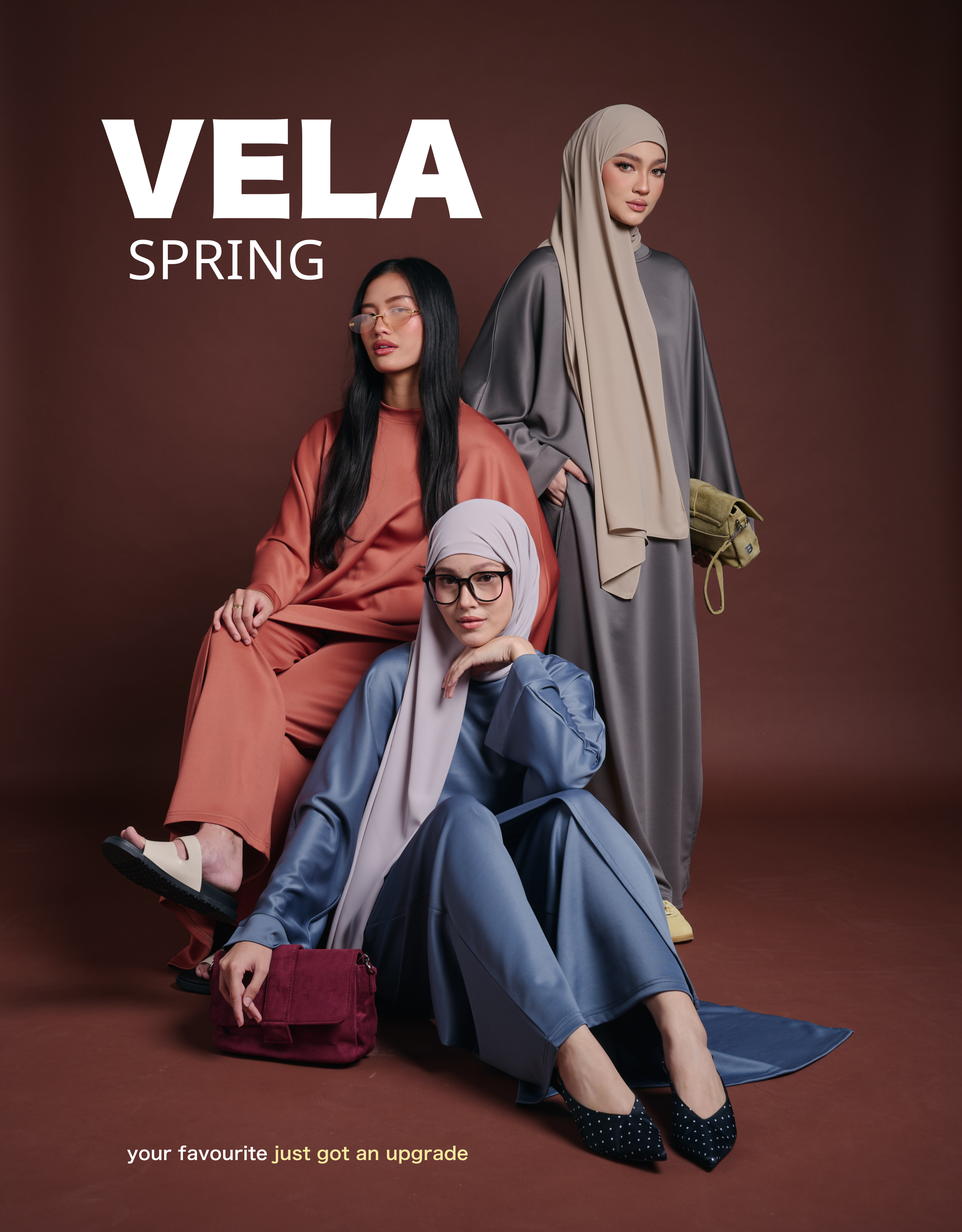 Vela Set - A whole new level of t-shirt abaya. Made of premium soft scuba, upgraded with two pockets on both sides. Also comes with a free matching shawl.
