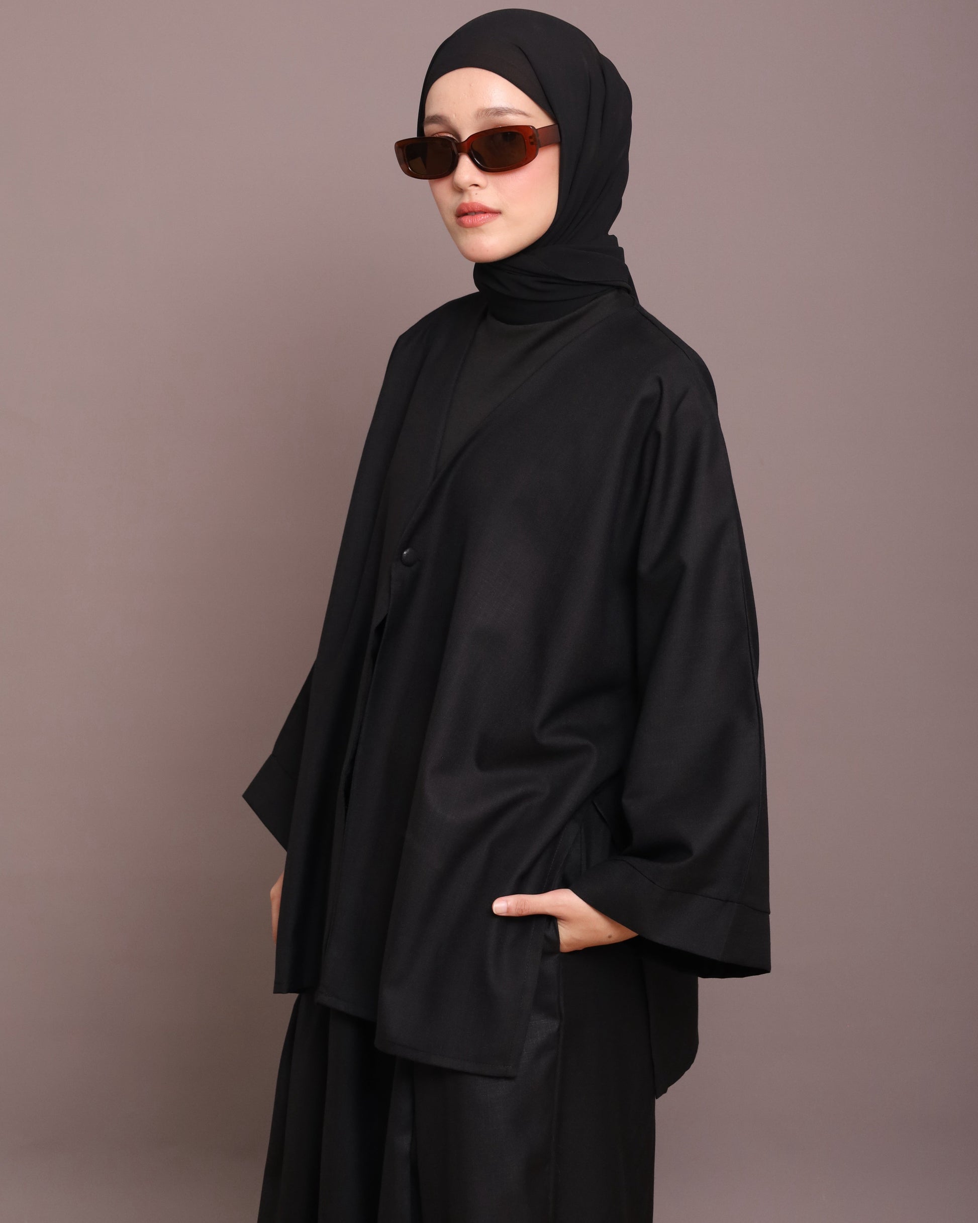 Crafted from breathable linen-cotton, it features a relaxed fit with dropped shoulders. Wear it open or buttoned up — it’s comfort meets sophistication. Subtle details and classic baggy pants add a laid-back vibe, complete with pockets for that extra cool look.