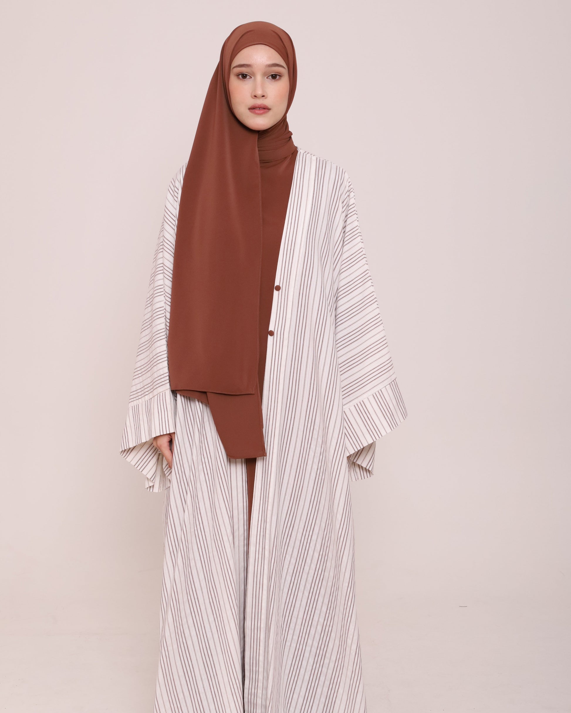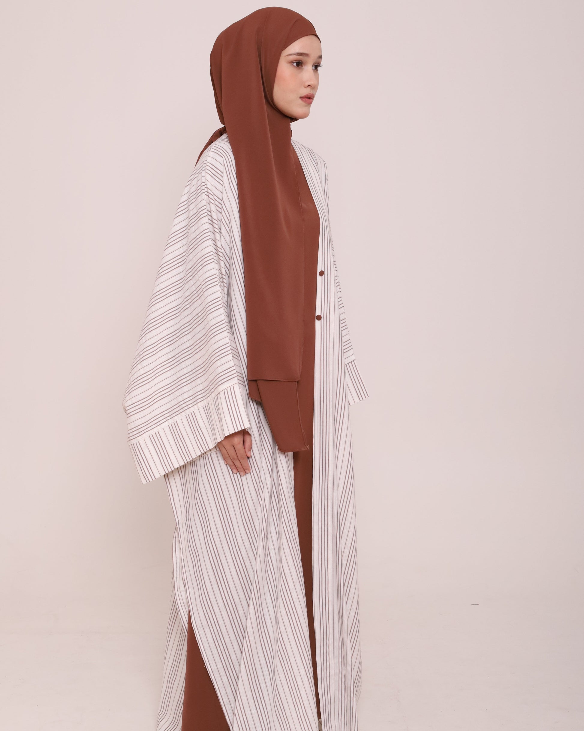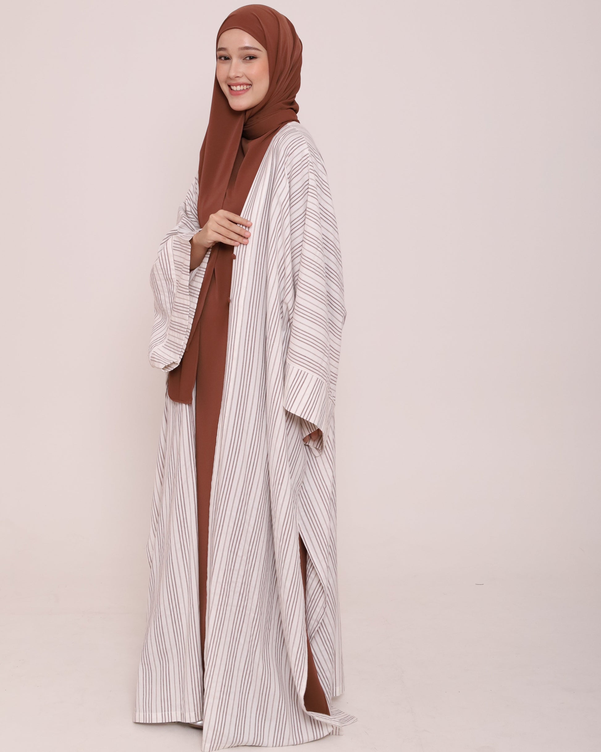 This timeless abaya creates a beautiful illusion of cotton outerwear with an inner dress made from a mix of elastic cotton fibers. The material is light and breathable, gives you a flowing silhouette while keeping cool throughout the day. Just pairs perfectly with any simple accessories, and you’re good to go!