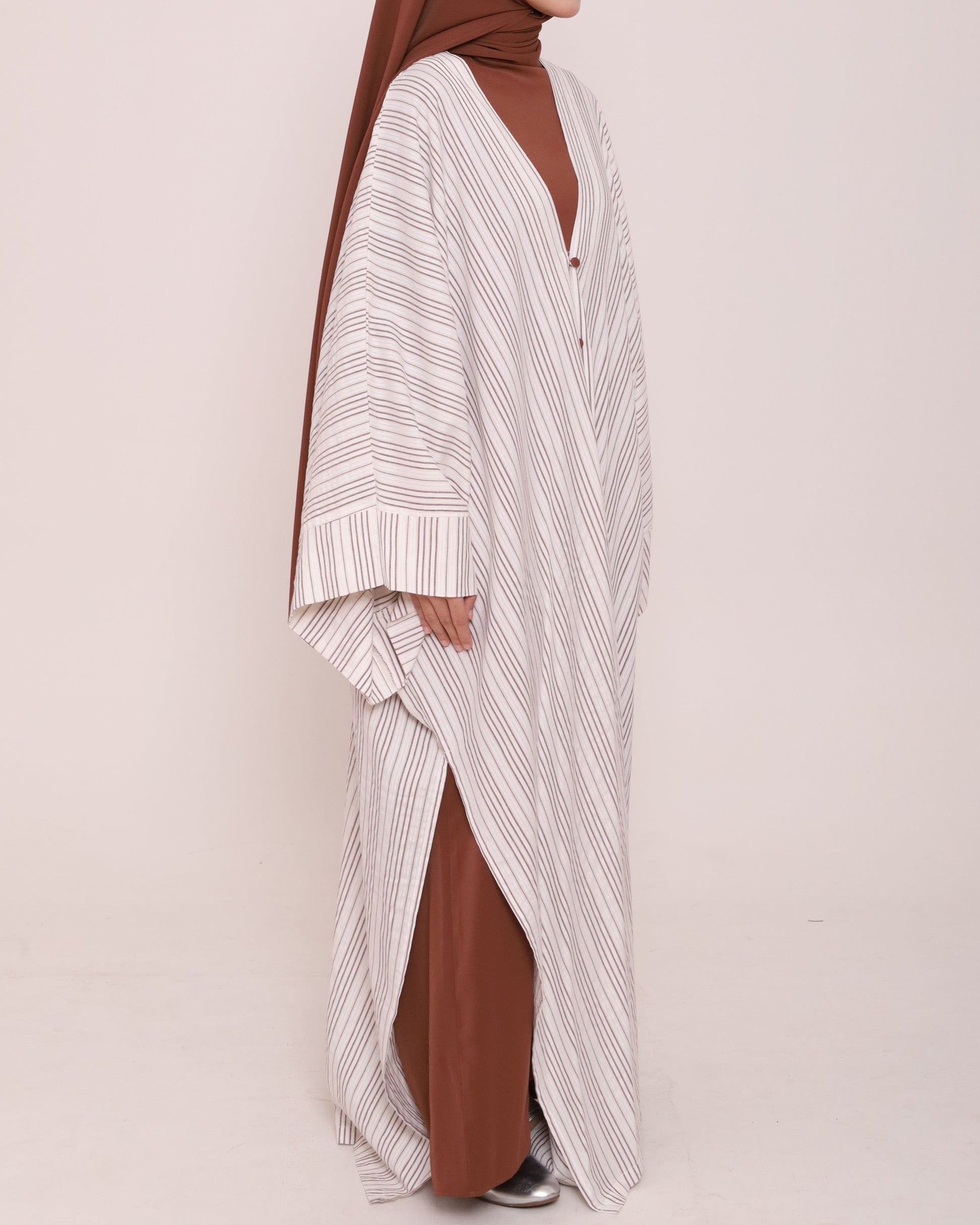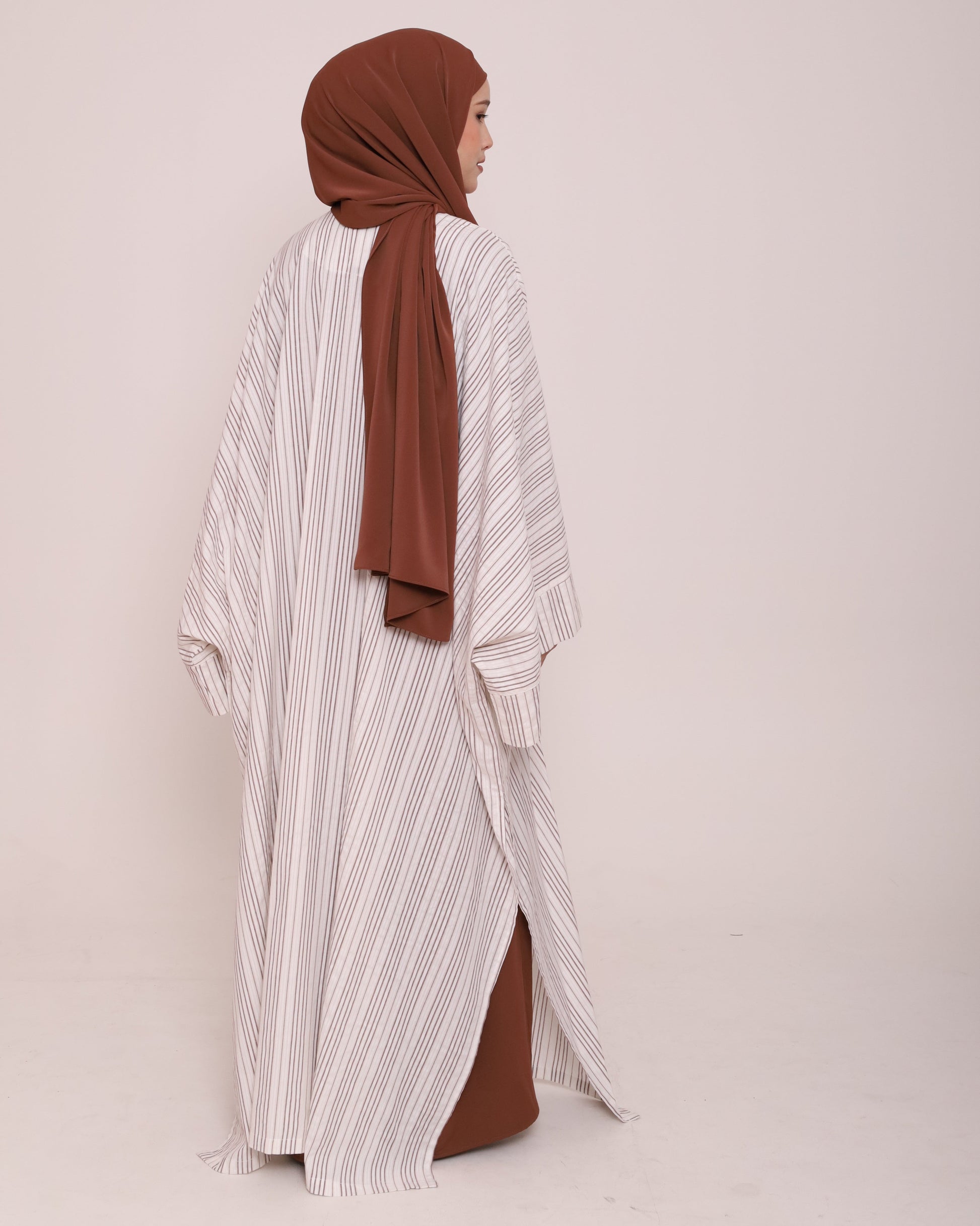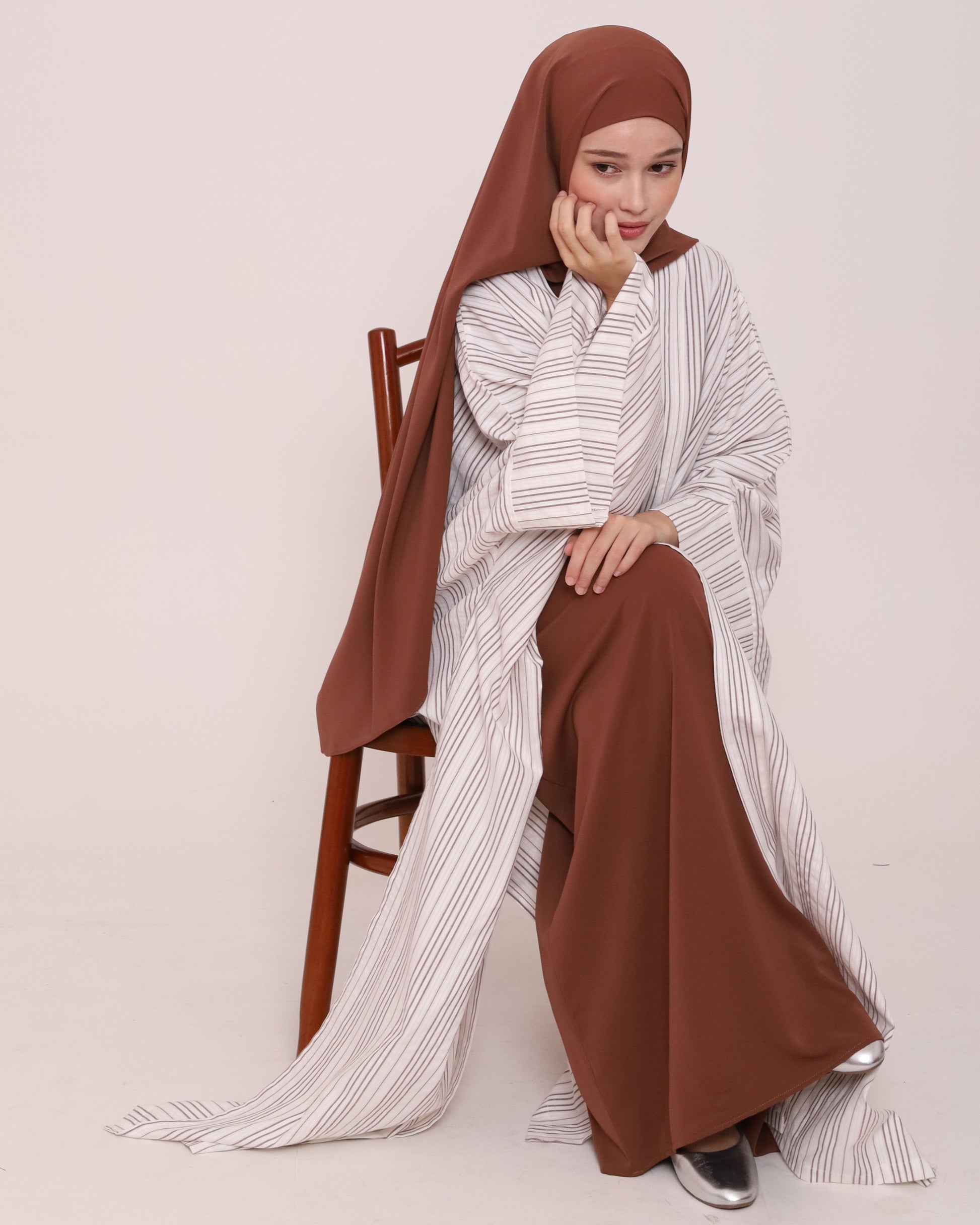 This timeless abaya creates a beautiful illusion of cotton outerwear with an inner dress made from a mix of elastic cotton fibers. The material is light and breathable, gives you a flowing silhouette while keeping cool throughout the day. Just pairs perfectly with any simple accessories, and you’re good to go!