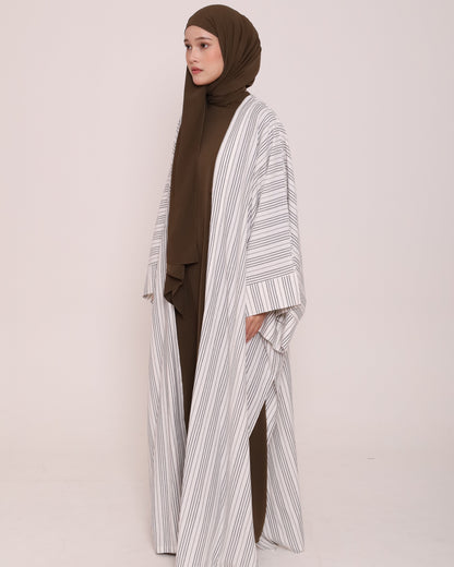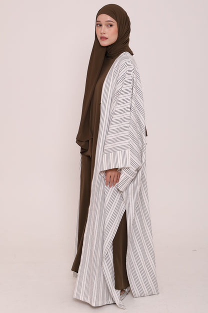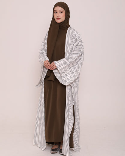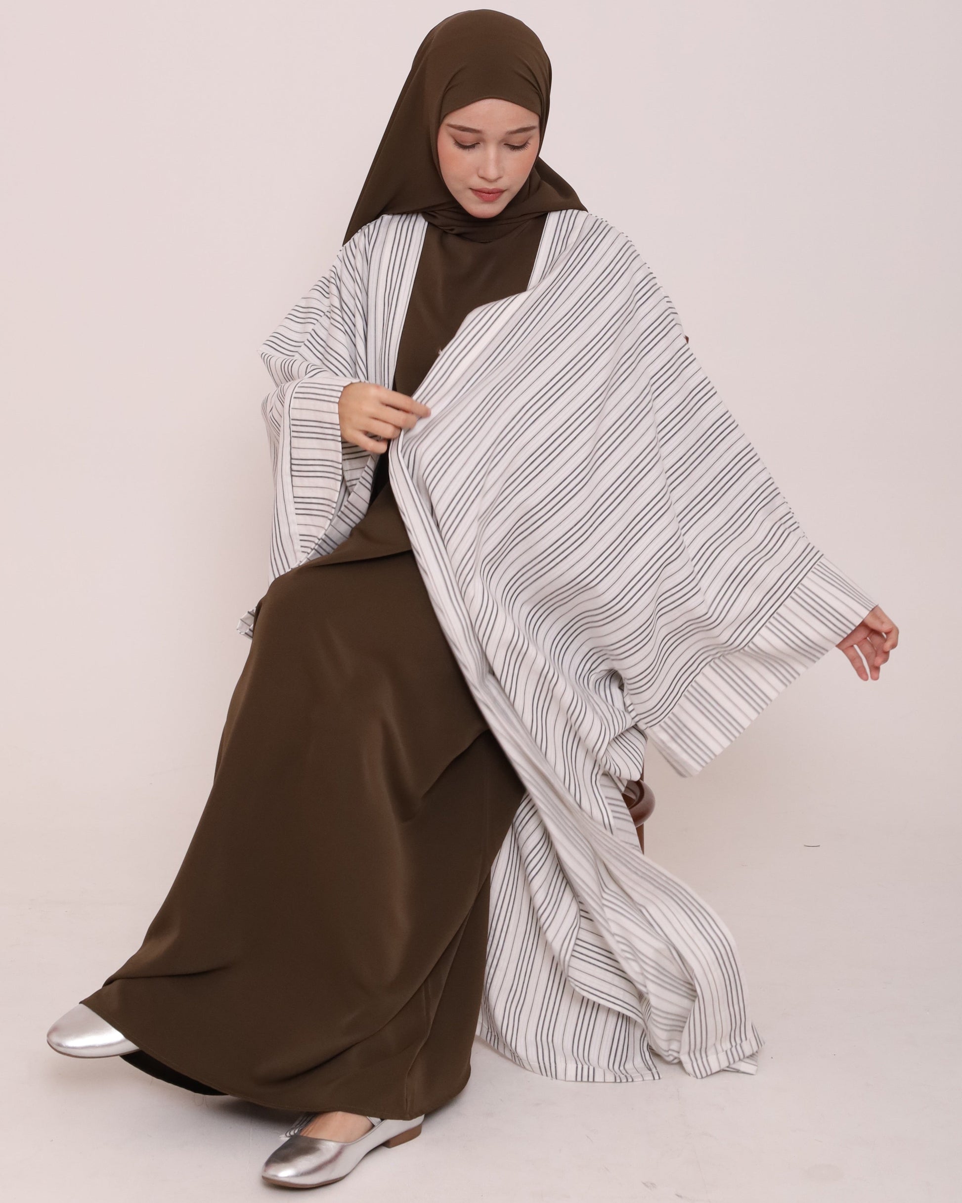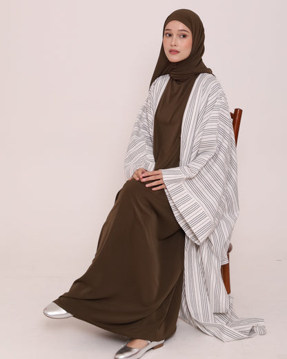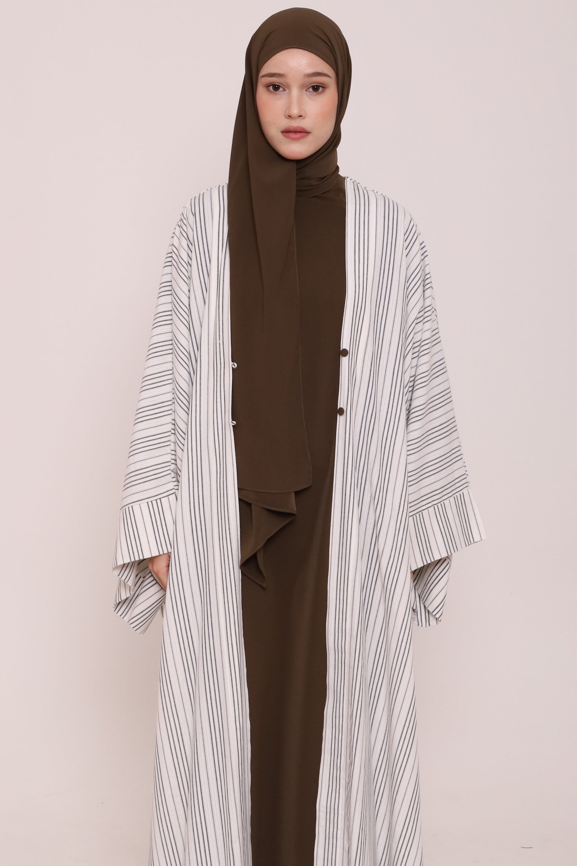 This timeless abaya creates a beautiful illusion of cotton outerwear with an inner dress made from a mix of elastic cotton fibers. The material is light and breathable, gives you a flowing silhouette while keeping cool throughout the day. Just pairs perfectly with any simple accessories, and you’re good to go!