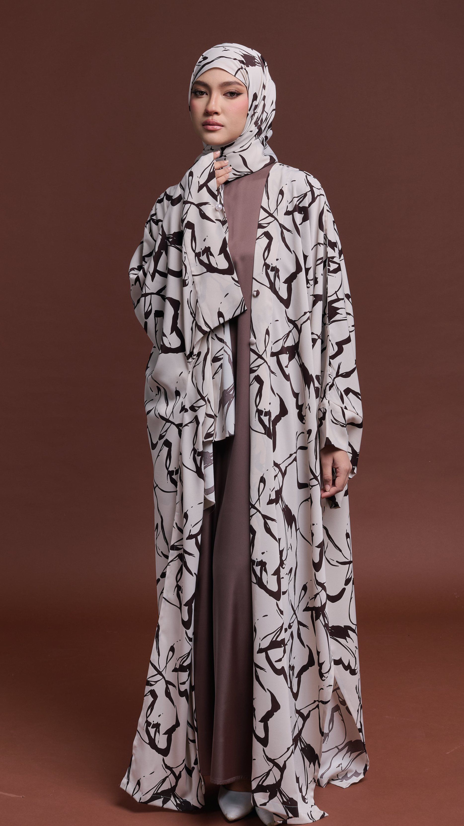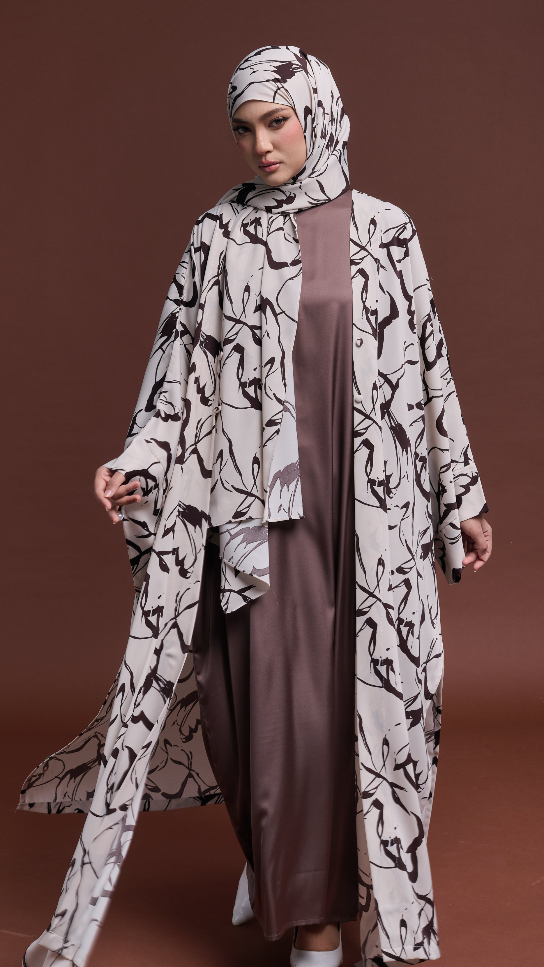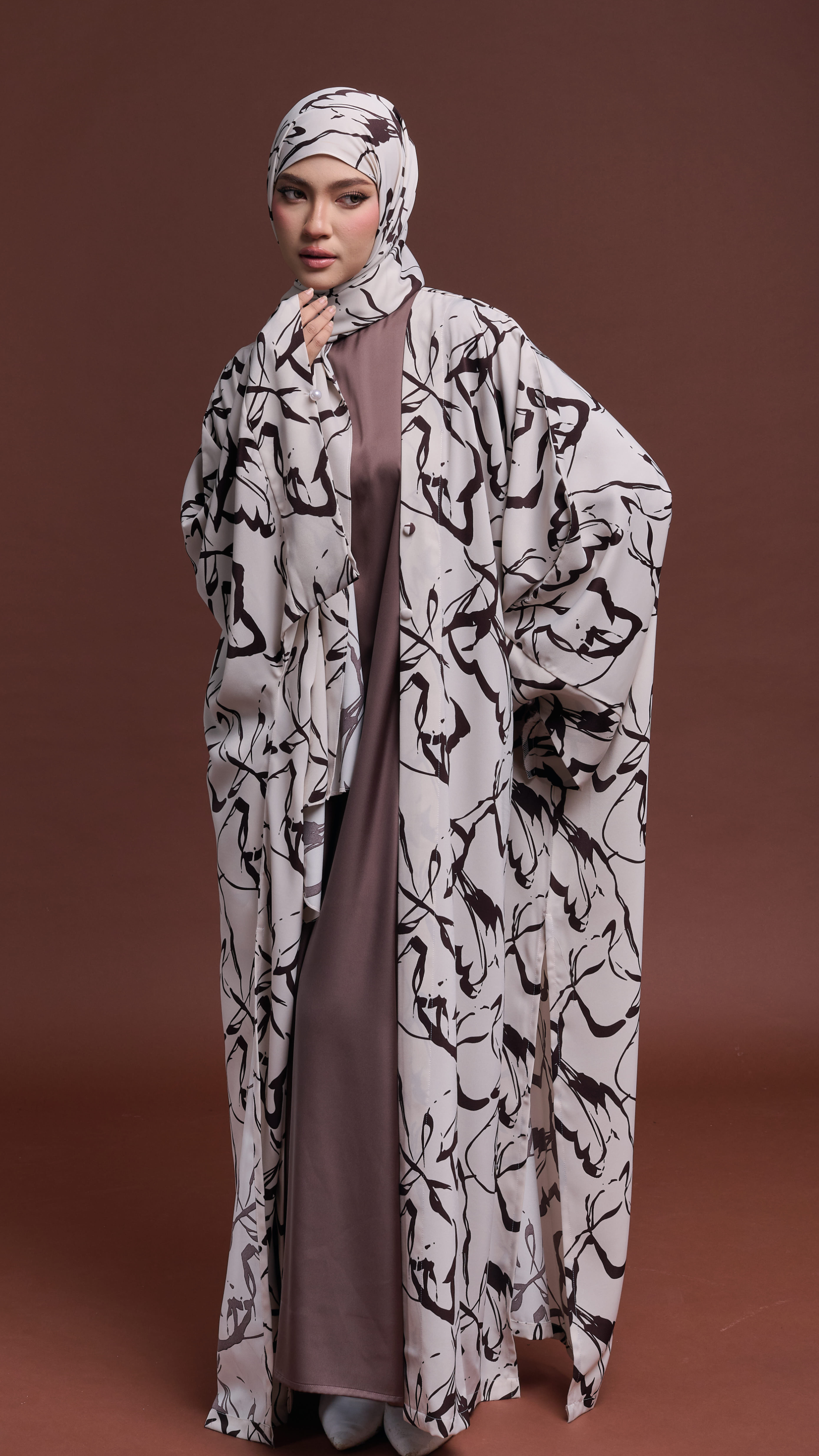 Serayah Set embodies elegance and modest sophistication. A 3-piece set includes an inner dress and a matching shawl, thoughtfully crafted to create a refined and luxurious Raya look.
