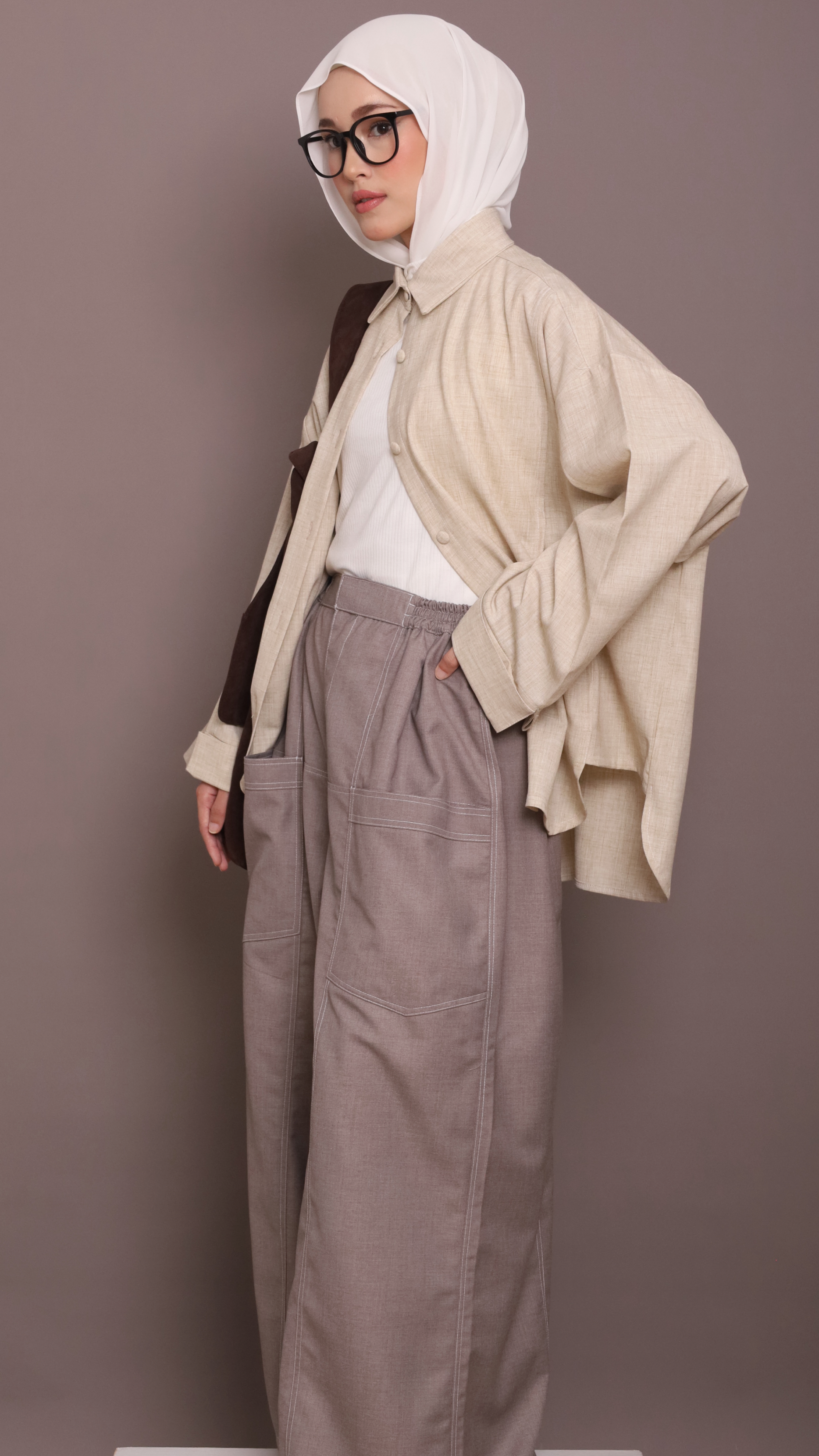 Crafted from a soft cotton-nylon blend, these pants combine structure with ease. Designed with double deep pockets, distinctive seam lines, and a wide-leg silhouette that defines a modern, baggy look. Style them with our Kyoto Top for a complete modest Japanese-inspired ensemble — understated, versatile, and timeless.