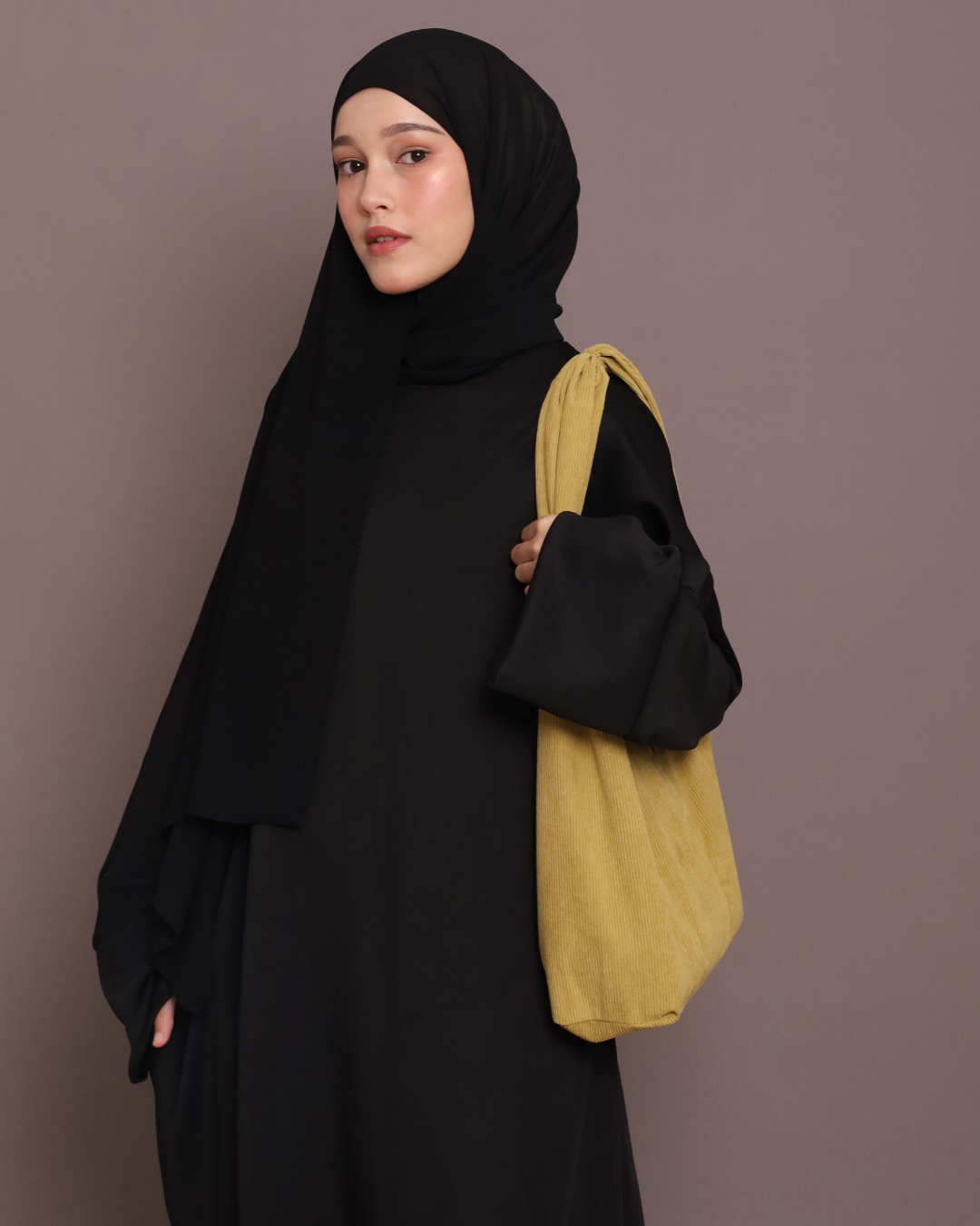 We add a personal touch to your style and we've custom-made our premium-grade chiffon shawl with a label tag. This set will definitely be a game-changer for abaya enthusiasts and for those who love a modest casual dress.