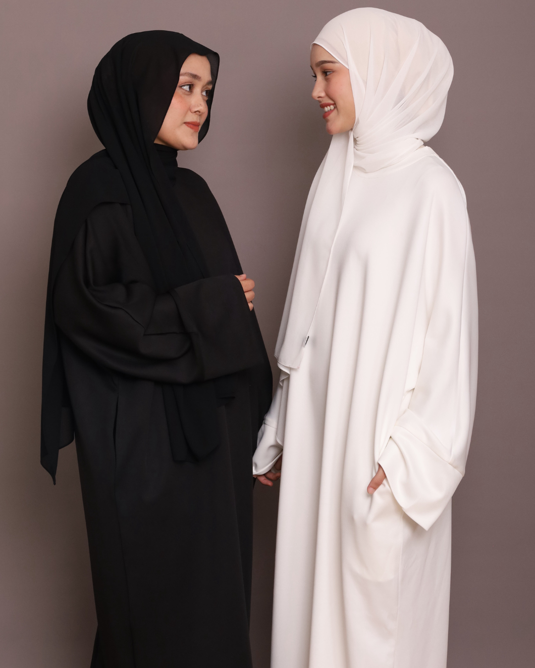 Vela Set 2.0 is a whole new level of shirt abaya. Made of premium soft scuba, upgraded with two pockets on both left and right sides, and structured to fit body sizes from S to XL.