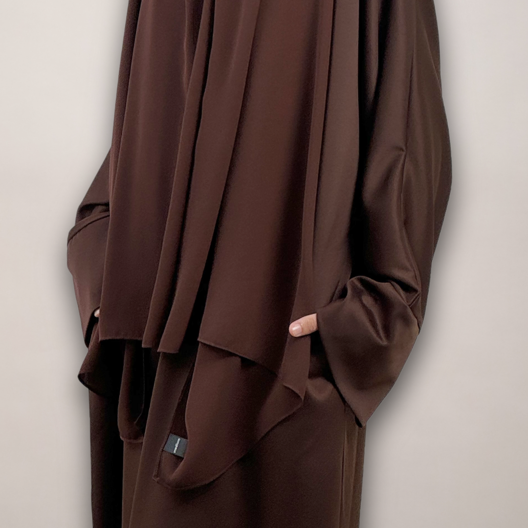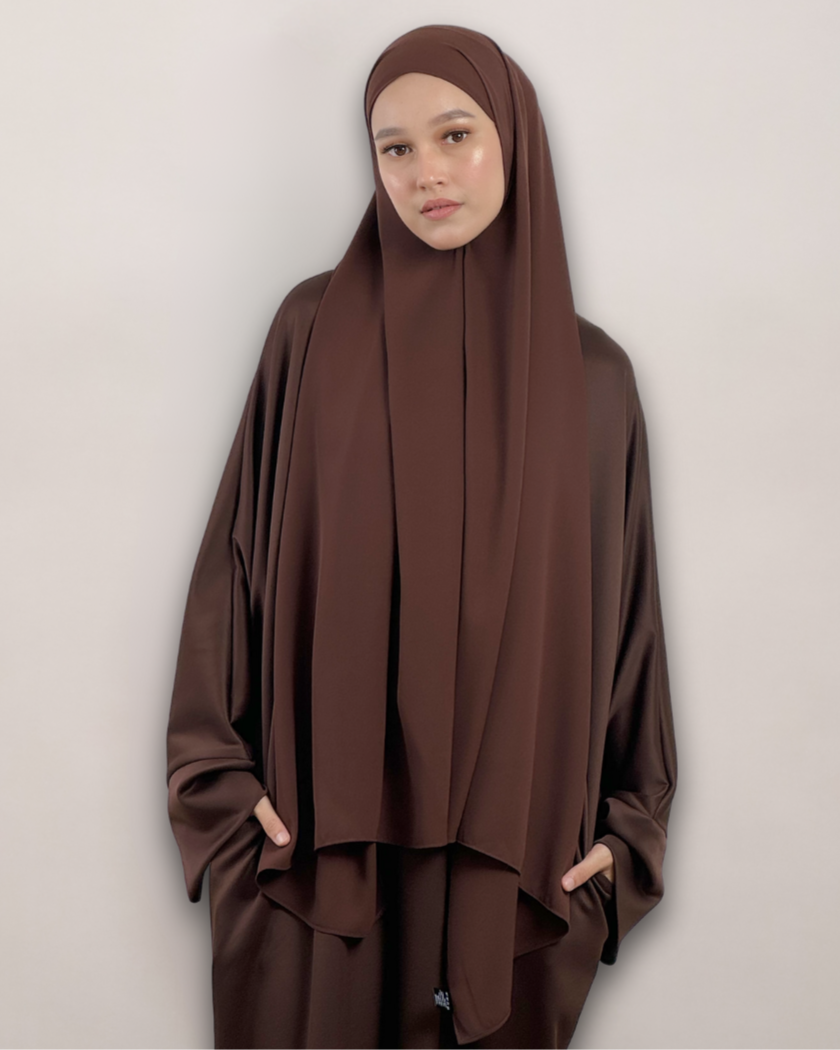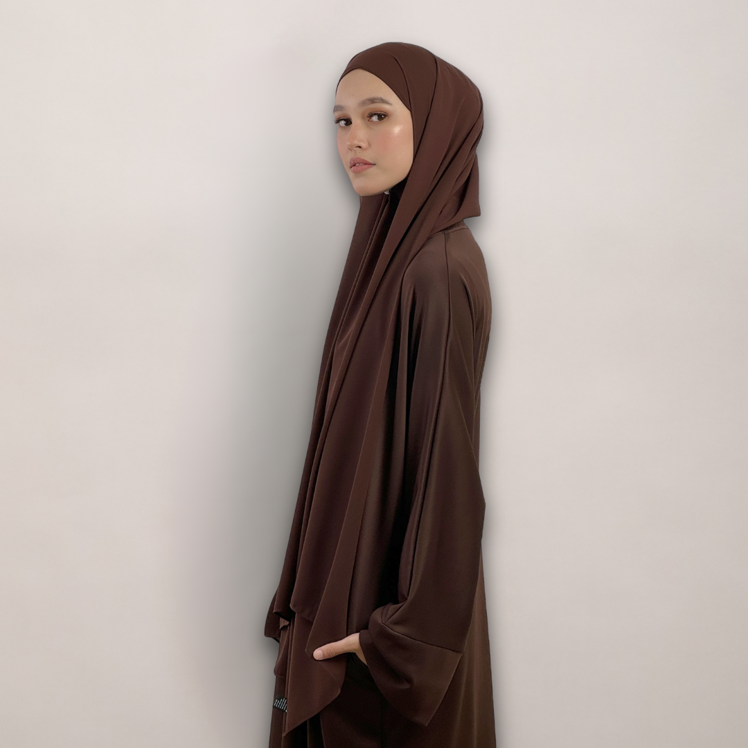 We add a personal touch to your style and we've custom-made our premium-grade chiffon shawl with a label tag. This set will definitely be a game-changer for abaya enthusiasts and for those who love a modest casual dress.