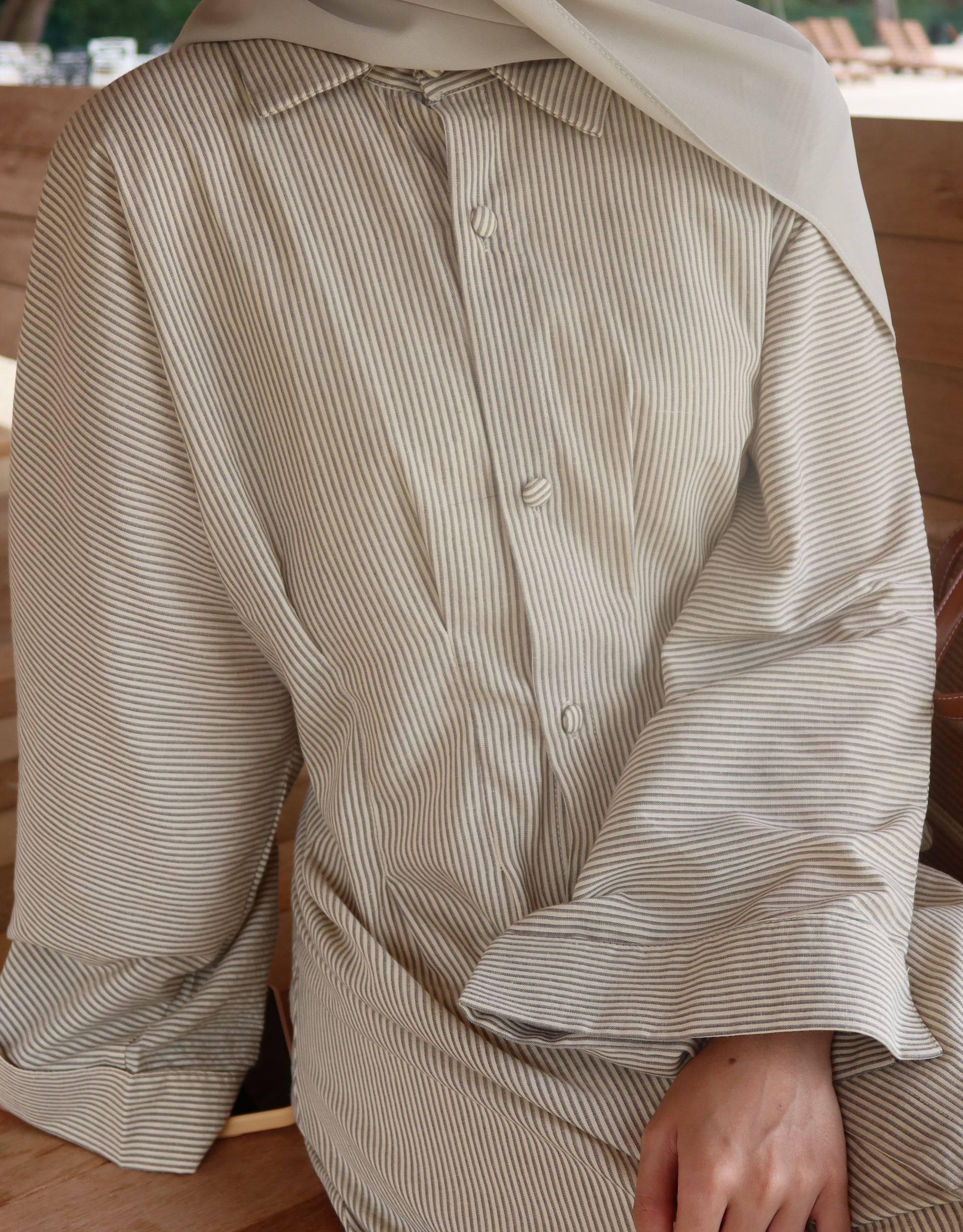 The silhouette is relaxed — not too polished — and can be worn loose for those who prefer a modest style. The flared hem and matching buttons add a playful touch, making it perfect for chill weekends, cute holidays, or even a romantic date night.