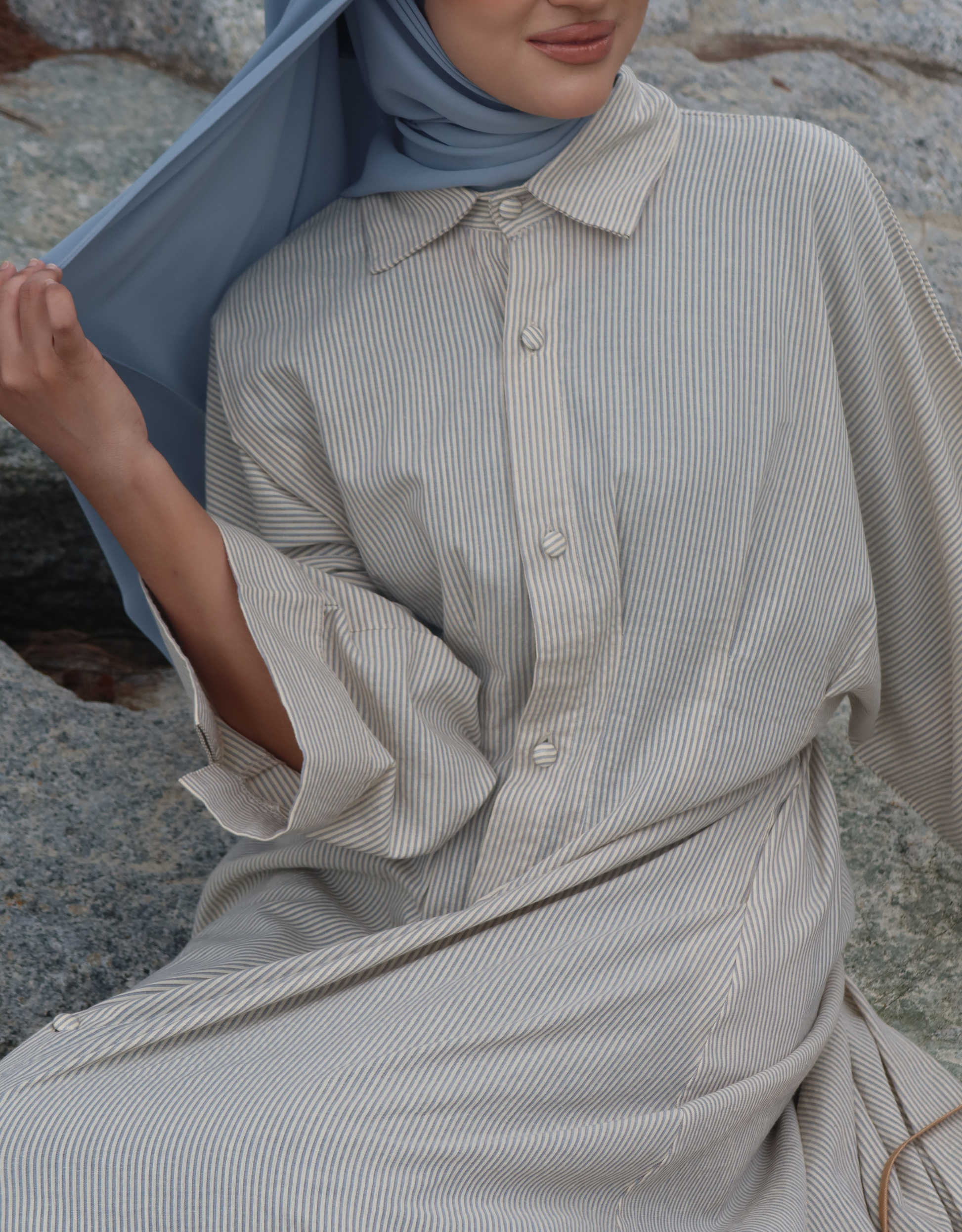 The silhouette is relaxed — not too polished — and can be worn loose for those who prefer a modest style. The flared hem and matching buttons add a playful touch, making it perfect for chill weekends, cute holidays, or even a romantic date night.