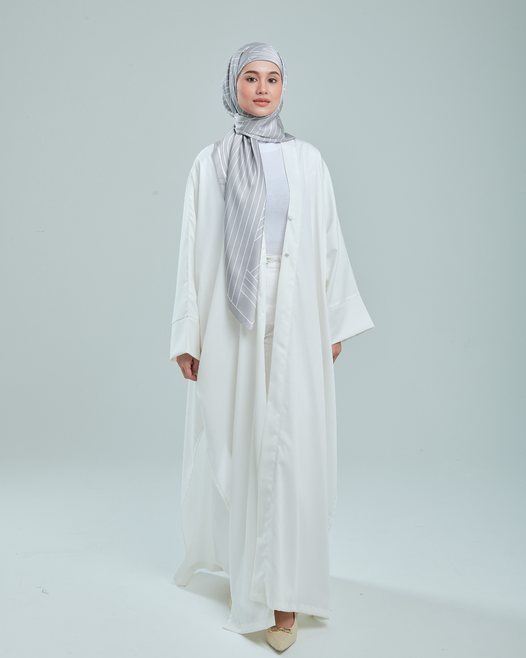 Plain Suri Outerwear - following the success of our Stripes Edition, this collection brings you a fresh twist with sleek, plain outerwear paired with hanyaSuri’s stripes square scarf.