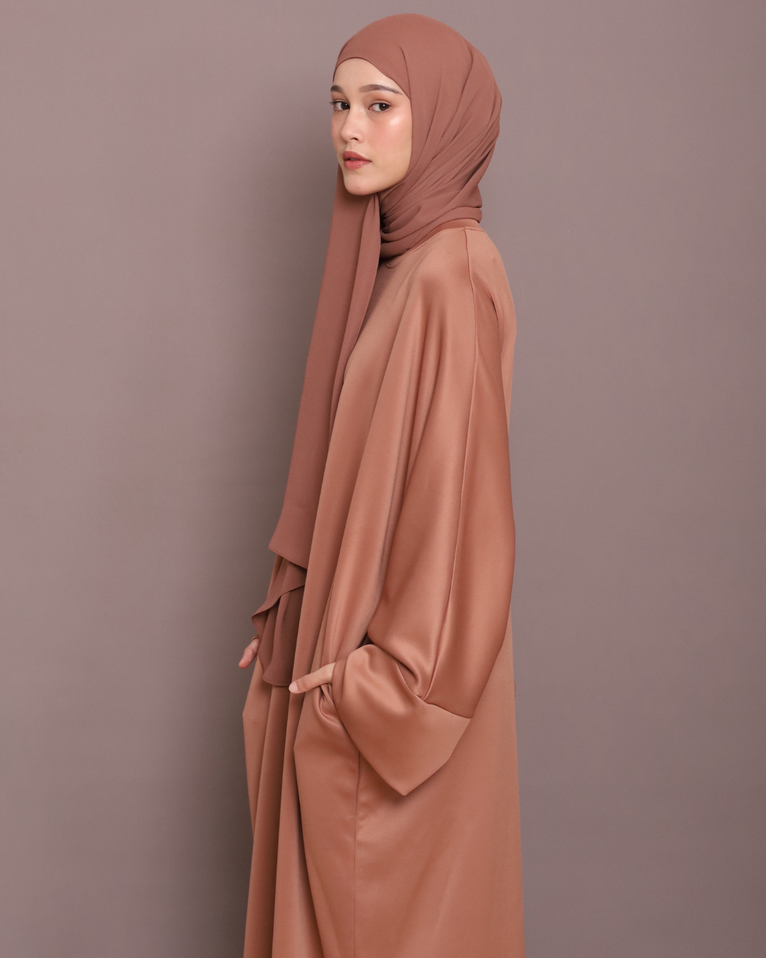 Vela Set 2.0 is a whole new level of shirt abaya. Made of premium soft scuba, upgraded with two pockets on both left and right sides, and structured to fit body sizes from S to XL.